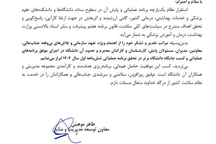 کسب جایگاه دانشگاه برتر در تحقق برنامه عملیاتی شش ماهه اول سال 1404
