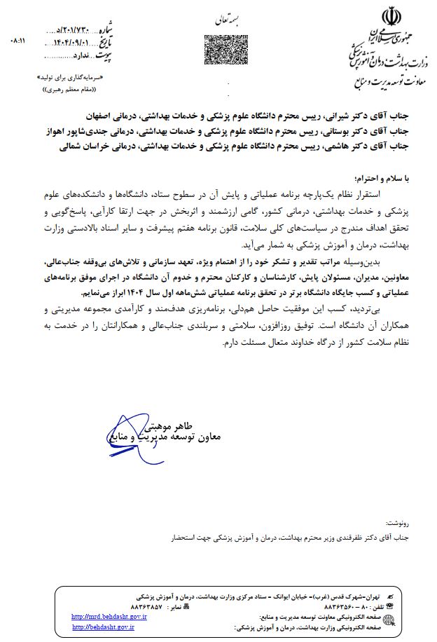 کسب جایگاه دانشگاه برتر در تحقق برنامه عملیاتی شش ماهه اول سال 1404